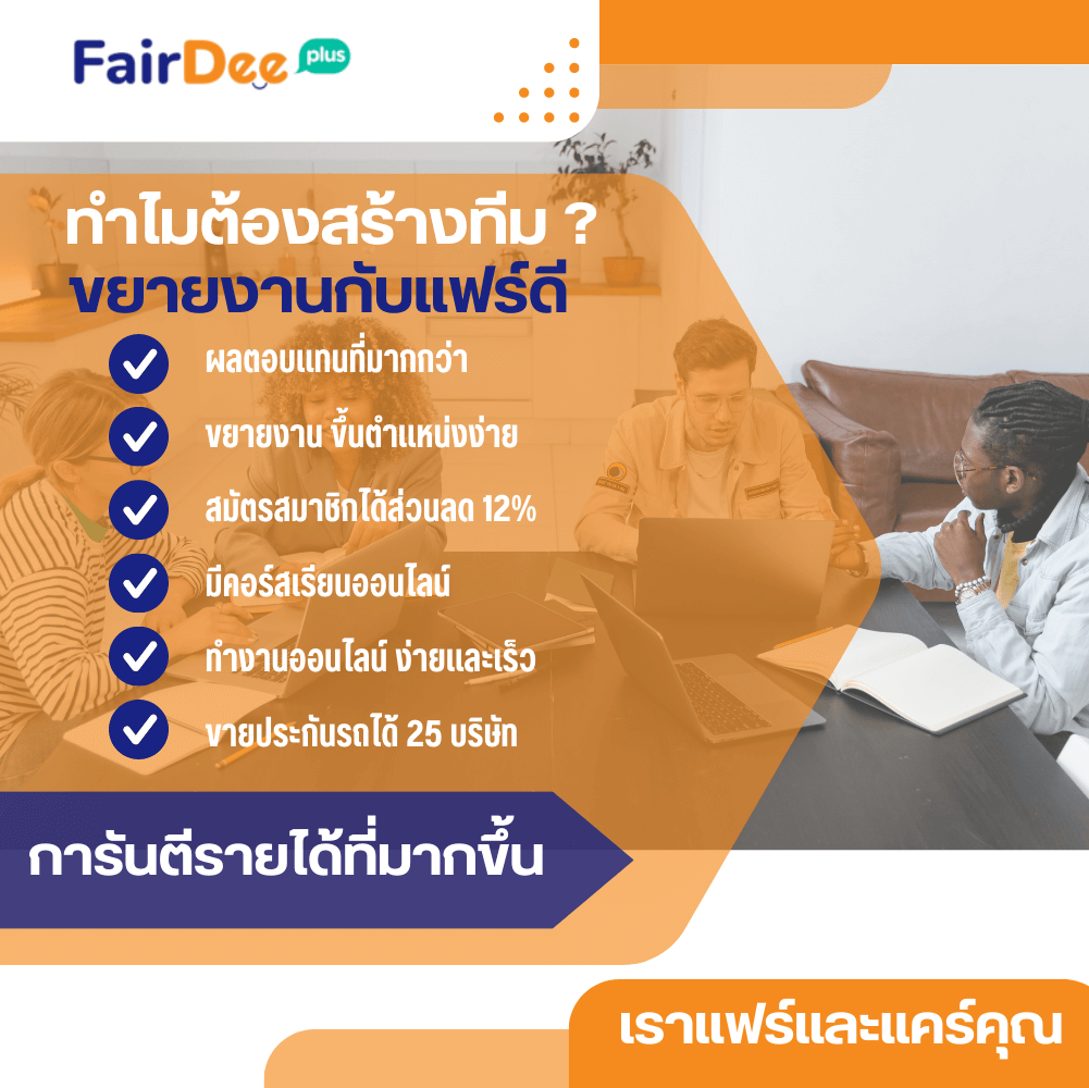 แฟร์ดี โบรคเกอร์ ประกันรถยนต์ออนไลน์ สร้างรายได้เสริม รายได้พิเศษ จากประกันวินาศภัยทุกประเภทตลอด 24 ชั่วโมง